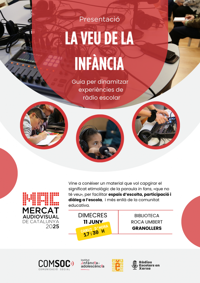 "La veu de la infància. Guia per dinamitzar experiències de ràdio escolar" elaborada per l'equip de COMSOC - Comunicació Social ha estat publicada recentment (accés en línia) pel Departament d'Educació de la Generalitat de Catalunya, i ha comptat també amb el suport de l'Institut Infància i Adolescència de Barcelona en part del seu contingut centrat en el dret a prendre la paraula.